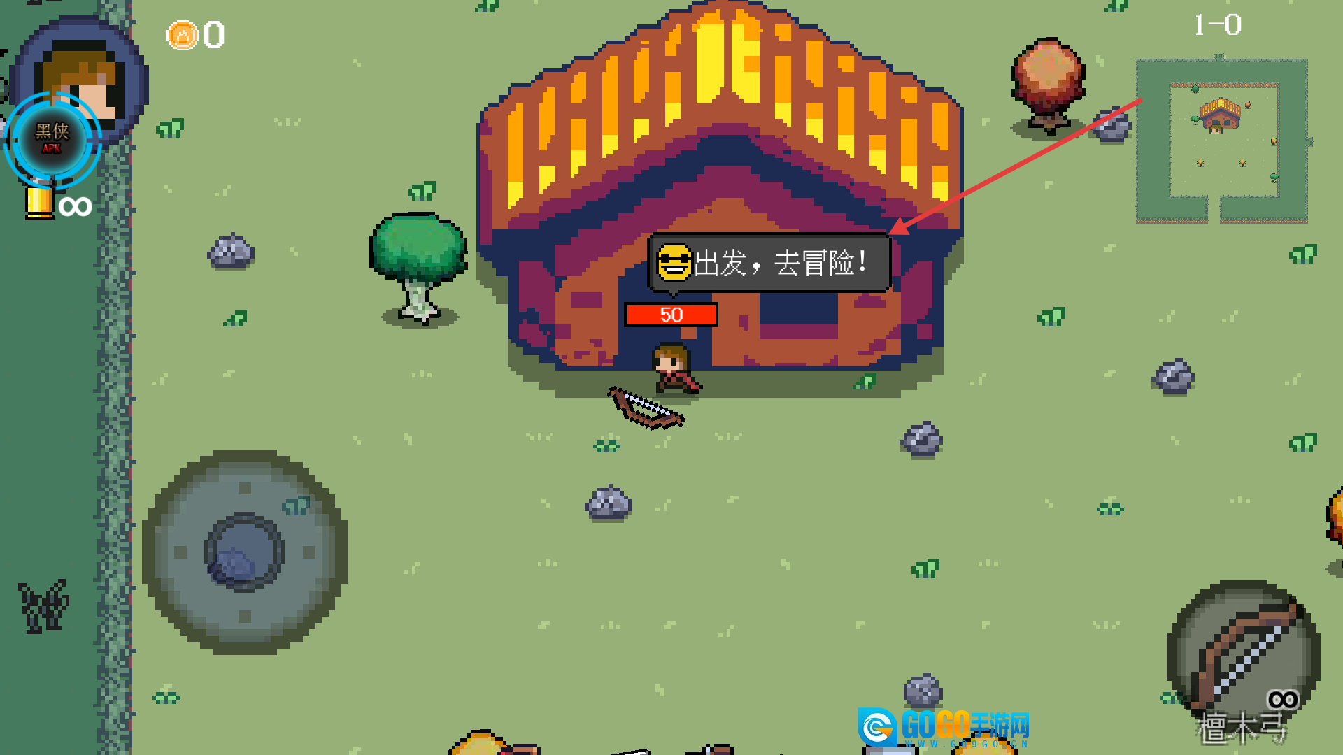进入游戏后点击【出发,去冒险!】按钮,花费50金币开启冒险旅程,就能快速进入核心战斗环节。