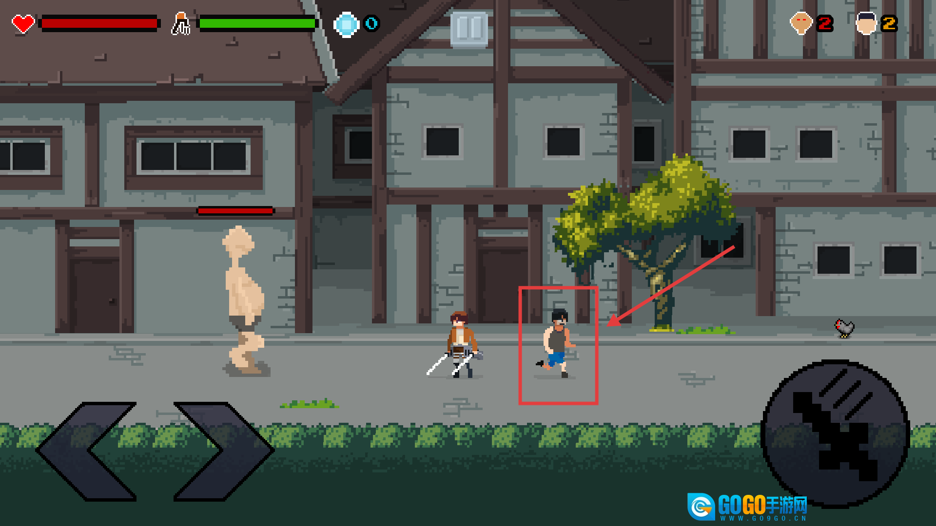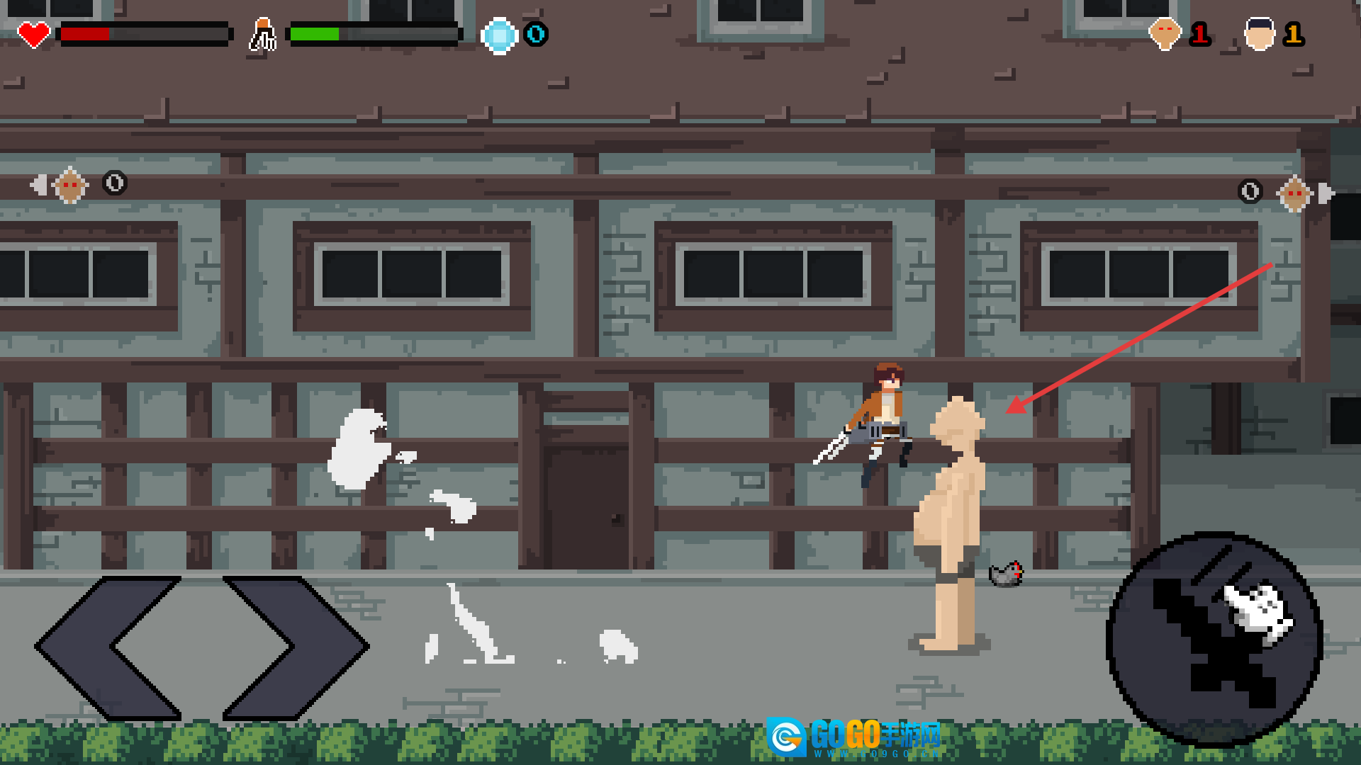 时刻留意血条和能量的状态,在它们耗尽之前击败规定数量的巨人,这样就能顺利闯过当前关卡。