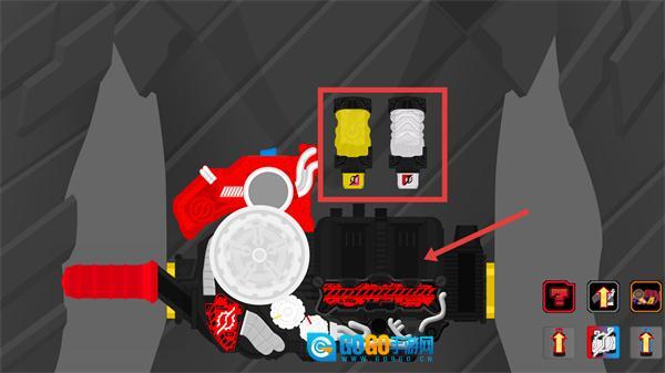 请选中红框内的黄白道具,把它安装到腰带装置上,这样就能让变身组件的配置更加完善了。