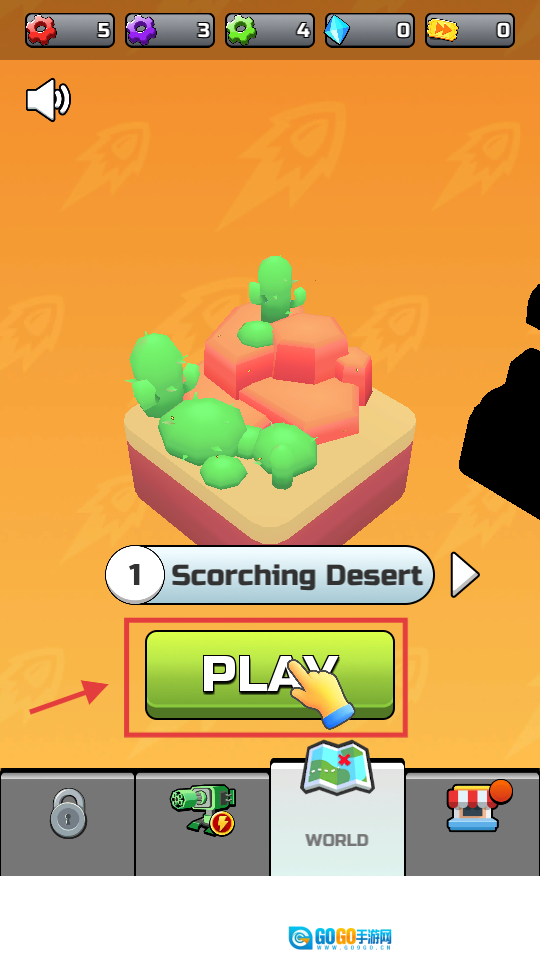 点击【PLAY】按钮进入【ScorchingDesert】场景,选择带有特殊属性的子弹,通过消灭丧尸来获取资源。
