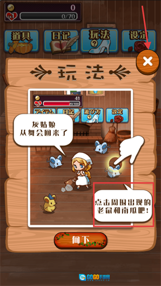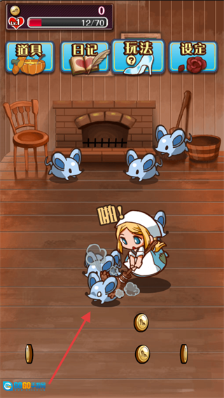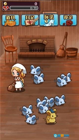 操控灰姑娘去击打老鼠,收集硬币来积累爱心,好为进化成公主做准备。