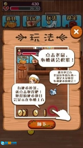 进入游戏后,建议先熟悉玩法机制,通过点击界面中出现的【老鼠】和【南瓜】图标,收集硬币以推进角色的养成与进化进程。