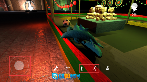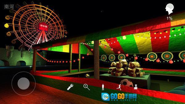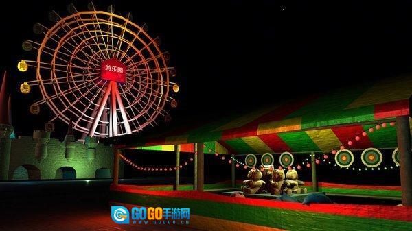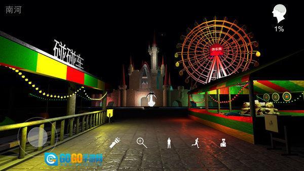 在暗黑风格的游乐园场景里进行探索,要仔细搜寻隐藏的线索,留意场景中的每一处细节,把发现的线索都收集起来,为后续解谜打下基础。