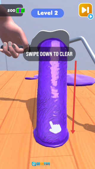 进入操作界面后,用手指向下滑动,把多余的紫色油漆清理掉,按照指引来操作肯定不会出错的。