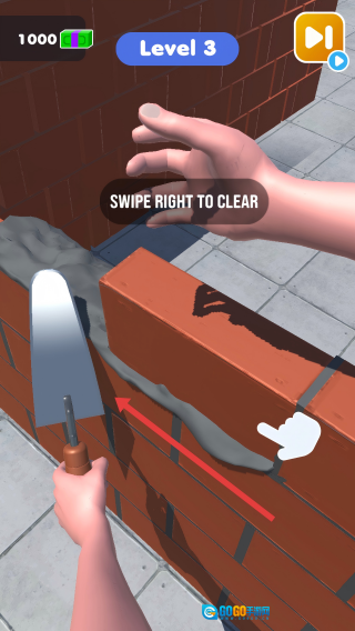 当砖块被按压下去时,多余的水泥会被挤到边缘,此时向右滑动就能清理掉这些水泥,让墙面保持整洁。
