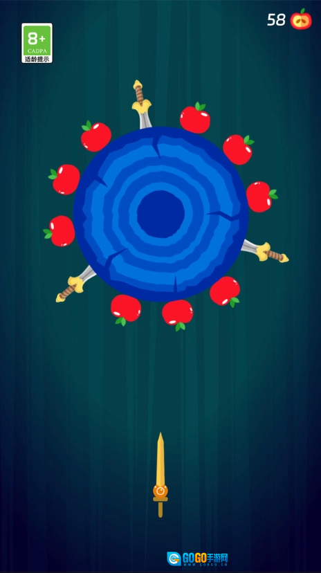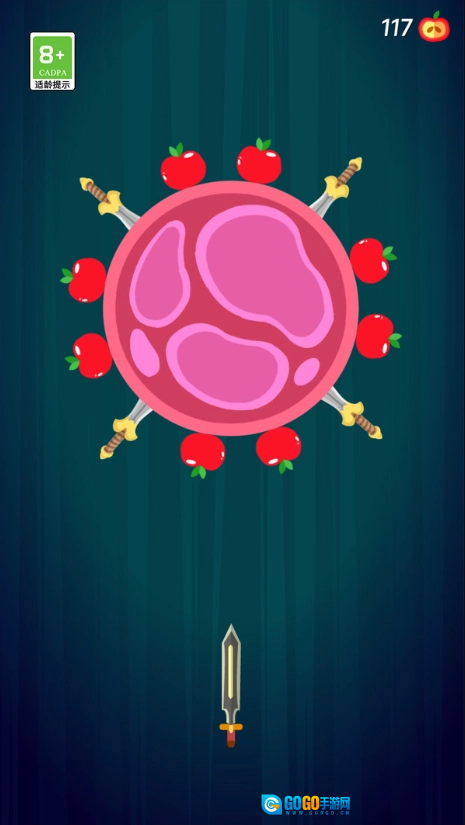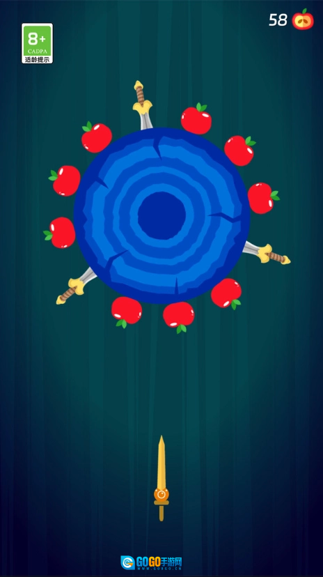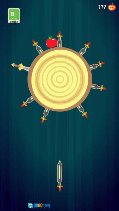 3、在投掷过程中,尽可能击中场景中出现的苹果,积累数量以解锁新的飞刀皮肤。