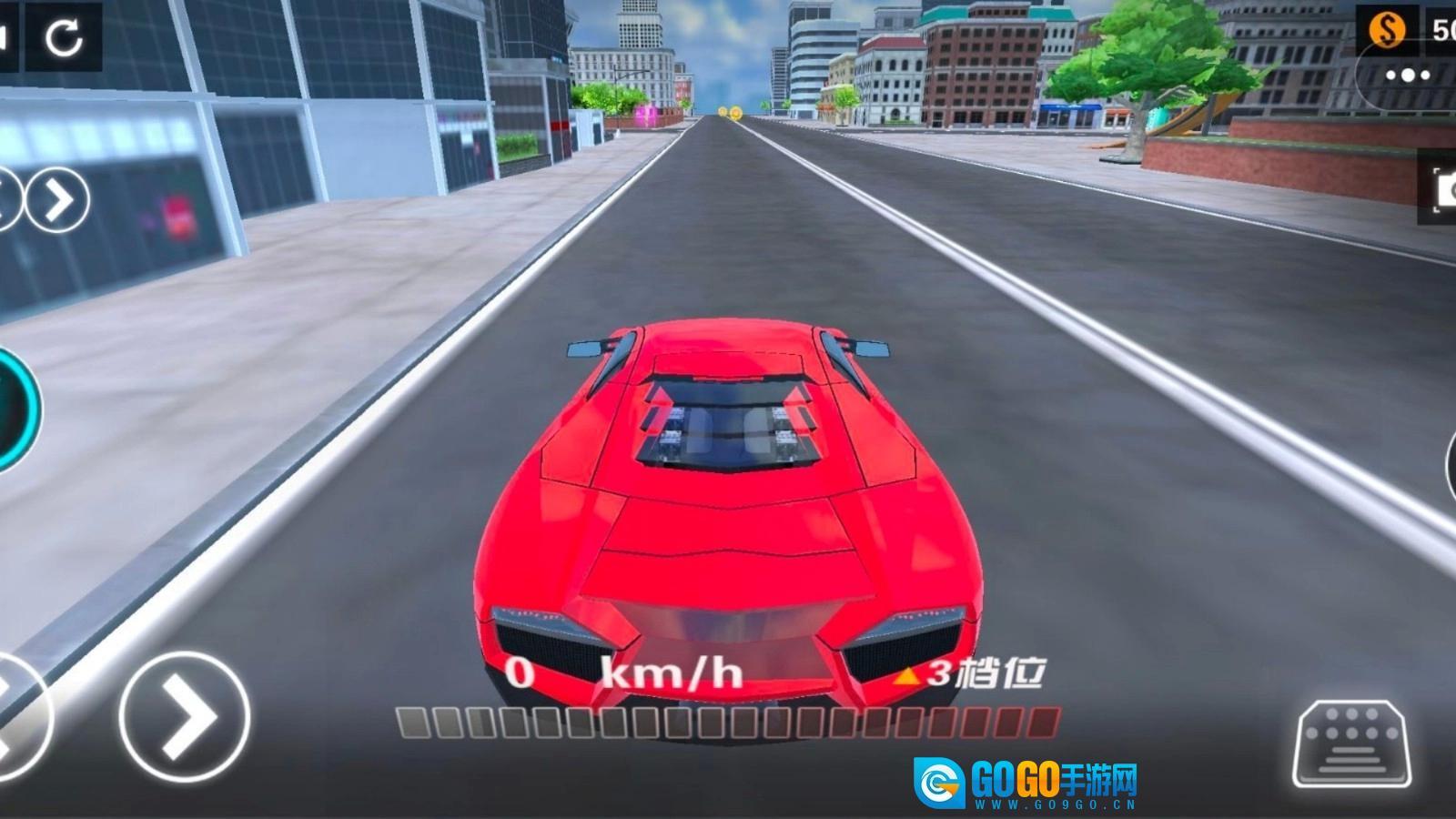 5、小编选择了自由驾驶模式,点击油门让汽车启动,调整方向盘保持车身平稳,在城市中兜风前进吧!