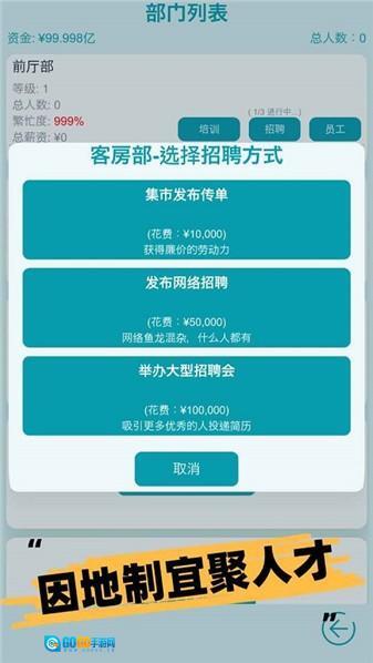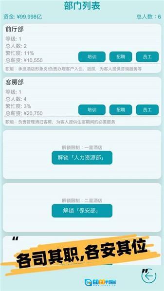 《模拟经营大酒店》是一款具有深度的酒店经营模拟游戏,玩家将对现代豪华酒店的运营进行全方位管理。其核心玩法结合了动态房态系统与多维度员工管理功能,玩家可借助实时数据看板对各项经营指标进行监控。部门间的协作机制会对服务效率产生影响,而员工属性系统则会触发一系列随机事件。游戏中的营销系统支持玩家策划特色酒会活动,设施升级树能够解锁高端客房的相关配置。危机事件会考验玩家的应急处理能力,财务报表系统则可呈现精细化的成本控制情况。