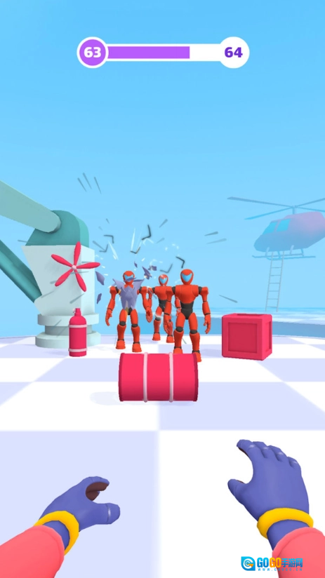 2、在正式关卡里,要留意场景的布局和敌人的分布情况,利用磁性绳索准确地捆绑机械守卫、电锯、油桶这类可互动的物体,再借助巧妙的拖拽与投掷来制造混乱局面。