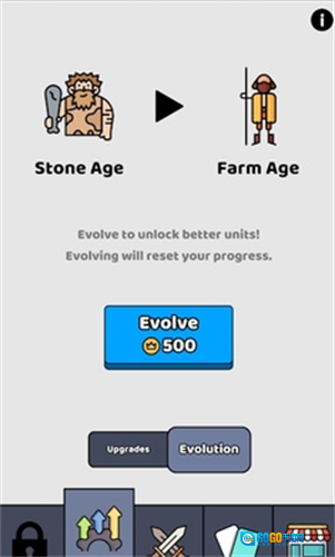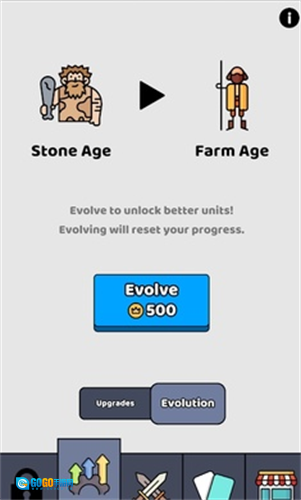 玩家每完成一关挑战,都能获取相应的金币奖励;这些金币可用于战斗外的时代升级,具体操作需点击画面左下角的升级选项。