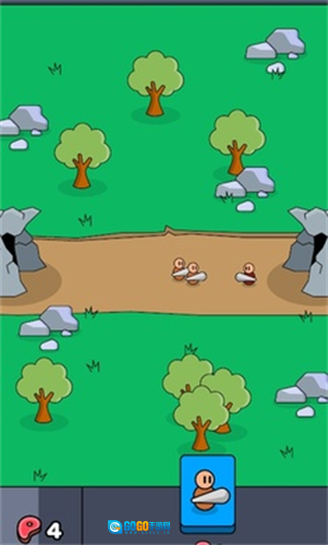 游戏以横版策略战斗的形式展开,战斗过程中,画面左下角的食物会自动恢复,当食物积攒到一定数量时,点击部队就能招募他们参与战斗。