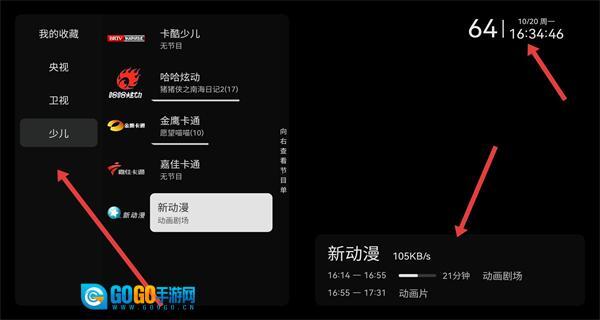 你可以先打开左侧的边栏,找到“少儿”这个分类点进去。在里面选择卡酷少儿、哈哈炫动这类频道,然后点击观看像新动漫的动画剧场这类少儿动画节目,这时候右边就会一起显示出播放的详细信息啦。