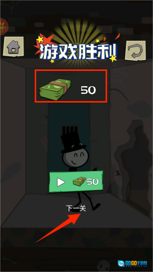 太棒了!你帮大聪明砸破了墙壁,让他成功逃了出来,游戏胜利咯~快领取奖励,继续挑战下一关吧!