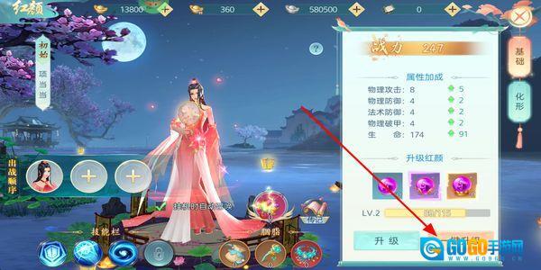在红颜界面中点击一键升级按钮,消耗相应道具来提升红颜等级,从而获得对应的属性加成效果。