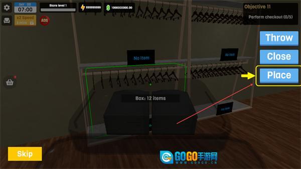 把物品箱放到货架区域,点击Place按钮就能完成摆放。