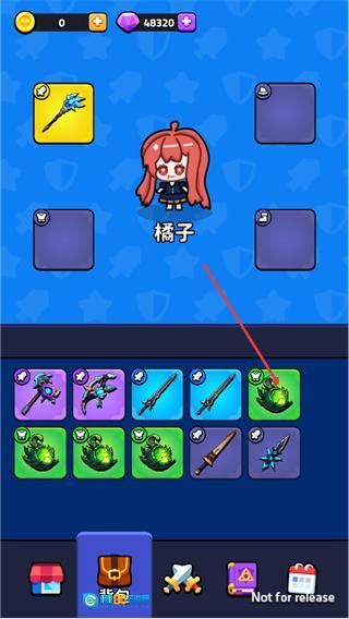 在背包界面里,找到界面内红色箭头所指向的装备,点击该装备就能查看它的详情,进而对角色橘子开展装备相关的操作。