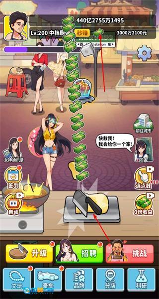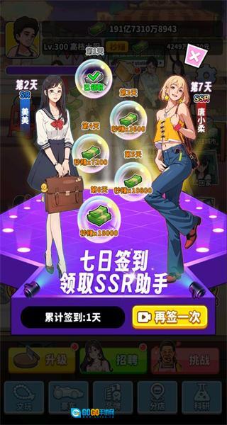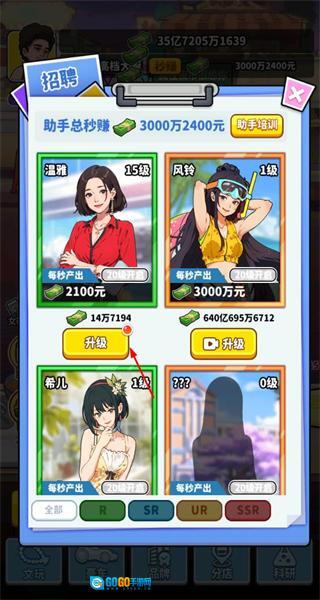 进入招聘界面后,消耗资源来升级助手等级,这样可以提升助手每秒的产出量,进而增强摊位的收益能力。