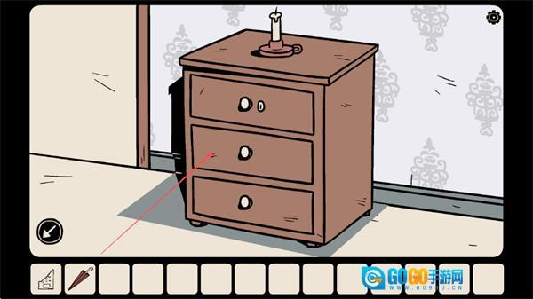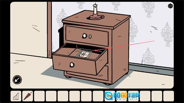 拉开抽屉拿到道具,把它放进物品栏,这样就能推动房间里的解谜环节了。