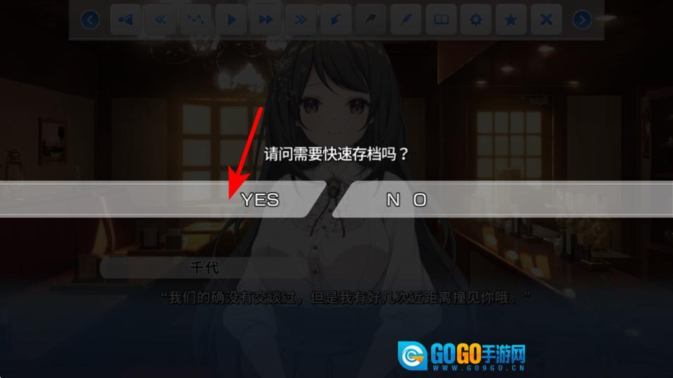 当屏幕上弹出“请问需要快速存档吗”的提示时,找到红色箭头所指向的YES选项并点击,就能完成快速存档的操作了。