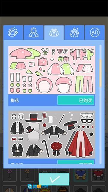 2、可进行装扮套装以及装扮好友两种游戏。已保存的套装可以在装扮好友时使用。