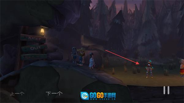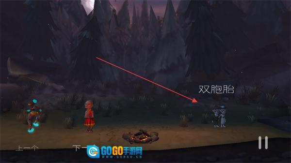 查看新场景里双胞胎角色的提示,以便继续推进冒险剧情。