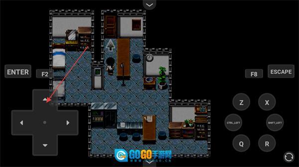在这个房间场景里,玩家能借助方向键控制角色移动,去探索房间内的床、书架之类的物品,以此推动游戏的探索进程。