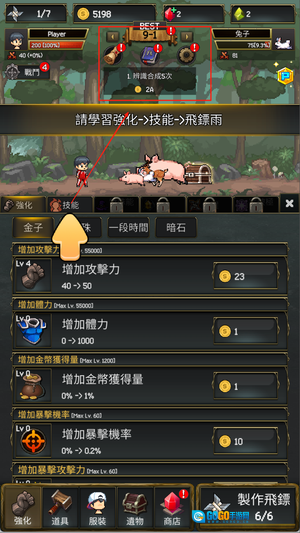 通过收集并合成飞镖,持续增强攻击力和附加效果,以此有效降低后续关卡的难度,提升闯关的效率。