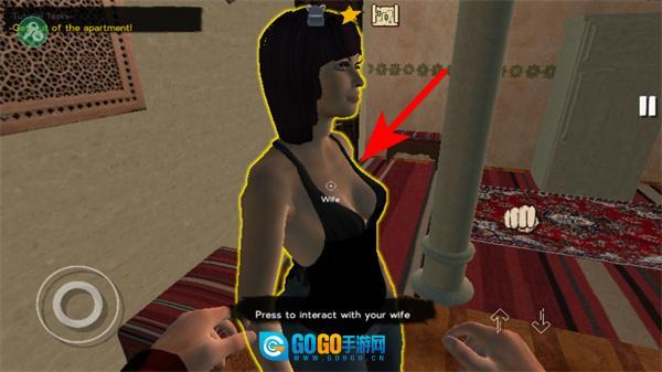 进入游戏后,点击箭头所指引的选项,这是开启新对局的关键步骤,完成点击后就能进入游戏的公寓场景。