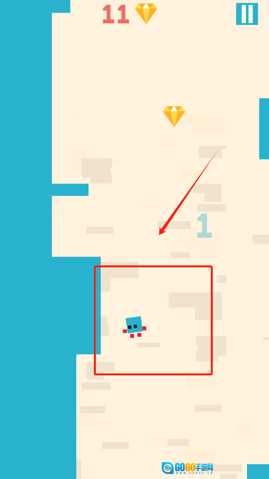 控制蓝色小人在地图里移动,收集黄色钻石来提升分数,留意上方显示的数字以及钻石所在的位置。