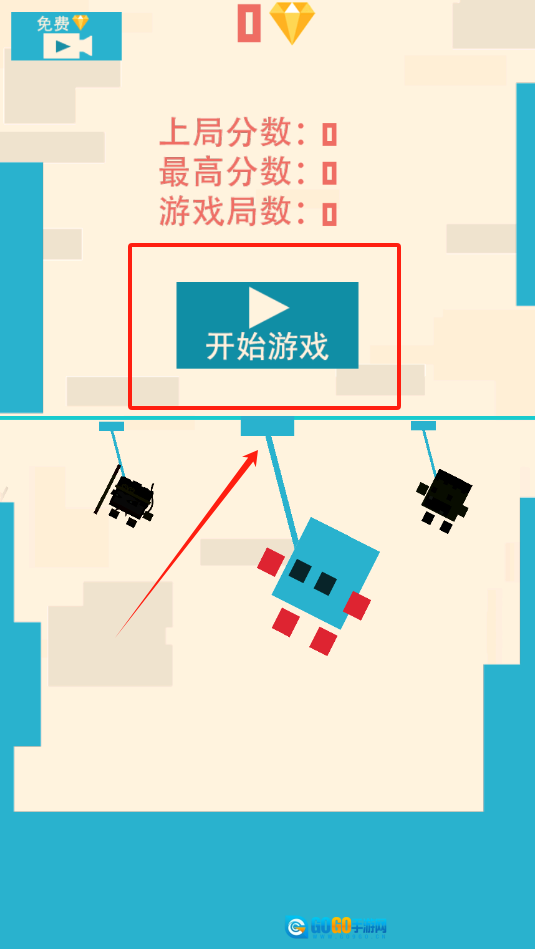 点击游戏界面带有红色边框的“开始游戏”按钮来启动游戏,此时界面上方会显示免费标识以及分数相关信息。