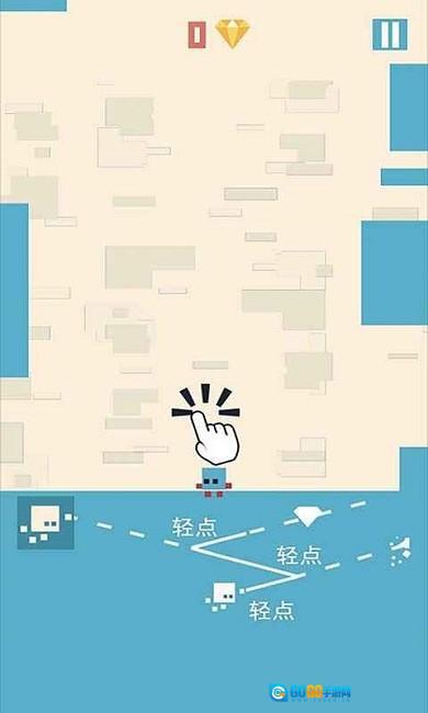玩家通过轻点或长按屏幕操控小方块角色移动,需精准把握时机,在障碍物之间灵活穿行,持续向上攀爬。
