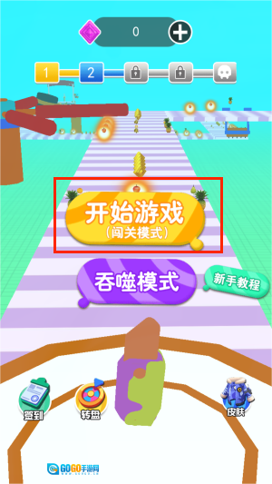 点击“开始游戏”按钮,借助简单的滑动与点击操作来操控萝卜刀向前行进。