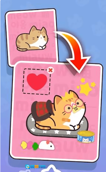 精致的卡通美术风格:游戏采用手绘质感的场景打造,涵盖温馨客厅、神秘花园等12个主题各异的场景空间。猫咪角色配备了多样的表情动态与互动动作反馈机制。