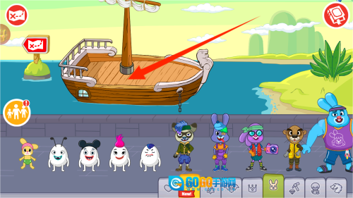 从屏幕下方的小动物队列里选一位当船长,选中的角色就会戴上水手帽坐进驾驶位。