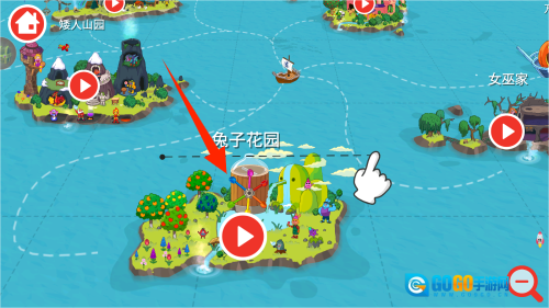 轻触起始箭头即可进入游戏,此时画面会呈现一幅手绘风格的花园地图,同时还会响起欢快的背景音乐。