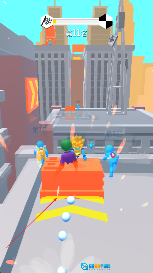 赛道上分布着不少加速带,和其他玩家竞赛时,要尽可能多地踩中加速带,这样就能领先对手冲在前面。