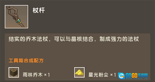 法杖并非普通武器,而是“可编程战斗终端”。其基础杖杆由雨林乔木与星光粉尘合成(星光粉尘仅在雨林晴夜时,从发光树叶上生成),后续通过镶嵌不同晶核,可激活对应的专属能力: