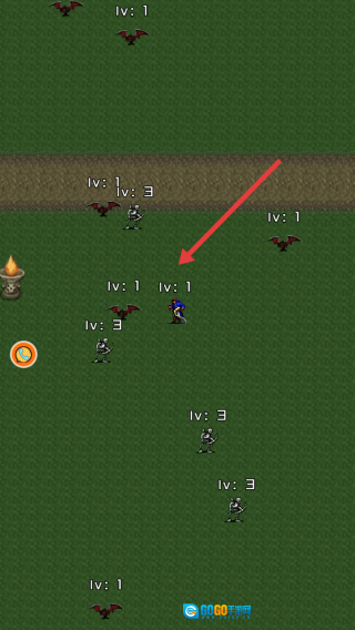 踏入野外场景后,操控角色在草地间穿梭移动,途中会遇到lv1蝙蝠、lv3骷髅这类怪物。此时需要规划好角色的走位,优先处理低等级的敌人,以此逐步积累战斗优势。
