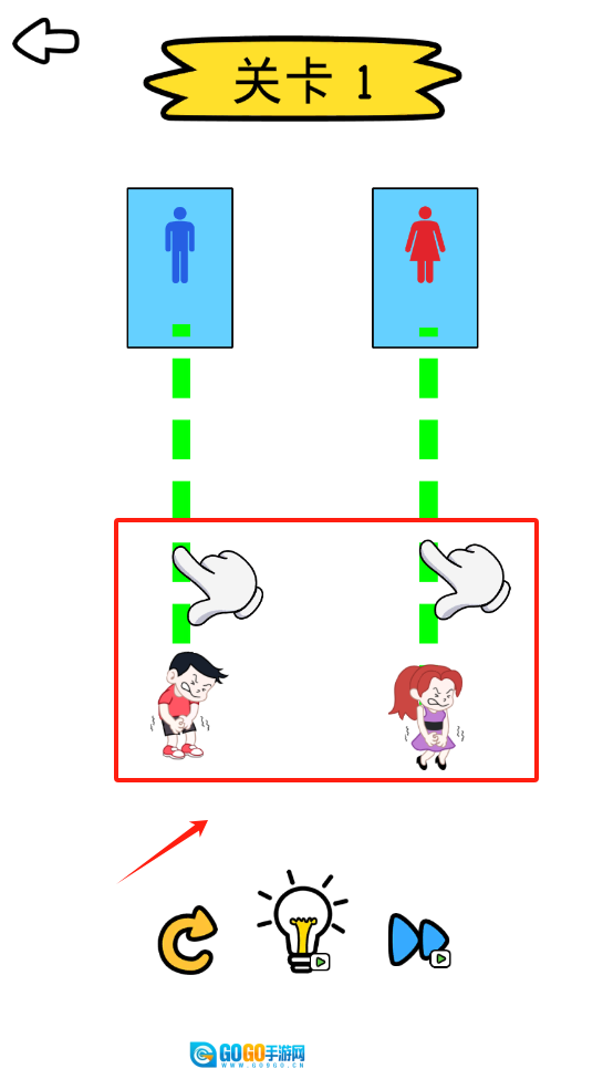 按照男女标识对应的手部图标来操作,同时借助刷新、提示和重置按钮来帮助通过关卡。