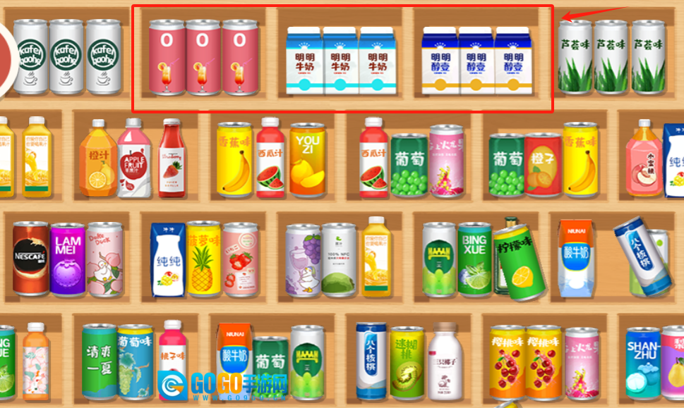 查看货架上各类饮料的摆放位置与产品名称,以便为接下来的整理收纳工作做好前期准备。