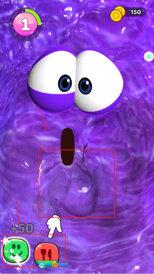 游戏界面下方的互动按钮,可用来进行喂食、洗澡、玩耍等操作,帮助史莱姆维持良好的状态。