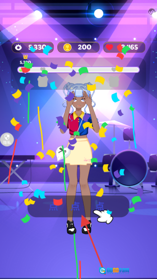 在游戏的展示场景里,角色换好装扮后会触发庆祝特效,这时就能好好欣赏角色的换装效果了。