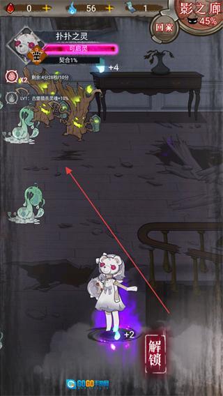 靠近场景里的树状怪物,触发互动来获取资源,以此推进关卡进度。