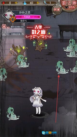 踏入古堡影之廊这一关卡,控制角色在场景内移动,为与怪物进行互动做好准备。