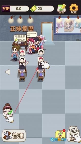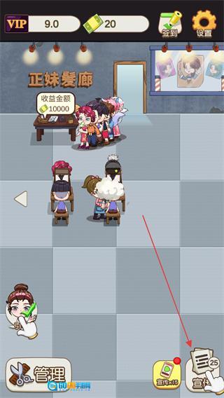 在美女美发店里,点击顾客安排他们入座,完成服务后就能得到收益,慢慢积累资源。