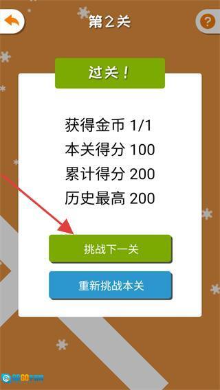 当关卡显示通关后,点击“挑战下一关”按钮,即可继续推进游戏进度。