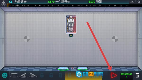 点击界面右下角那个红色的三角形开始按钮,就能启动测试流程,让机器人触发弹簧并被弹起。