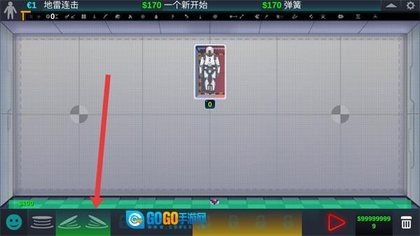 点击底部的弹簧道具,把它放置到场景里的地面区域。