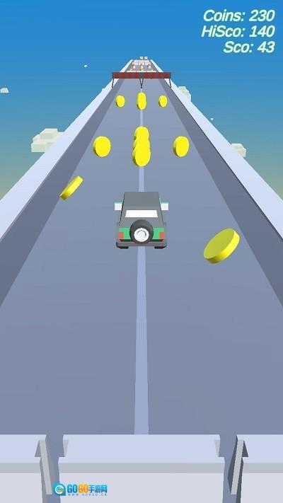 灵活操控汽车左右移动,避开迎面驶来的车辆;看准时机跳跃,收集空中的金币;在保持速度的同时,确保安全通过。