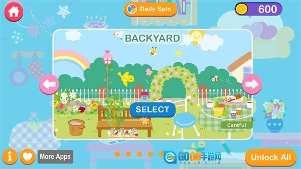 游戏采用Q版卡通的美术风格,角色的动作设计得十分俏皮可爱,场景里的细节也相当丰富——比如客厅的电话能够触发随机事件,后院中蜜蜂与瓢虫的互动还能进一步增添玩家的游戏沉浸感。